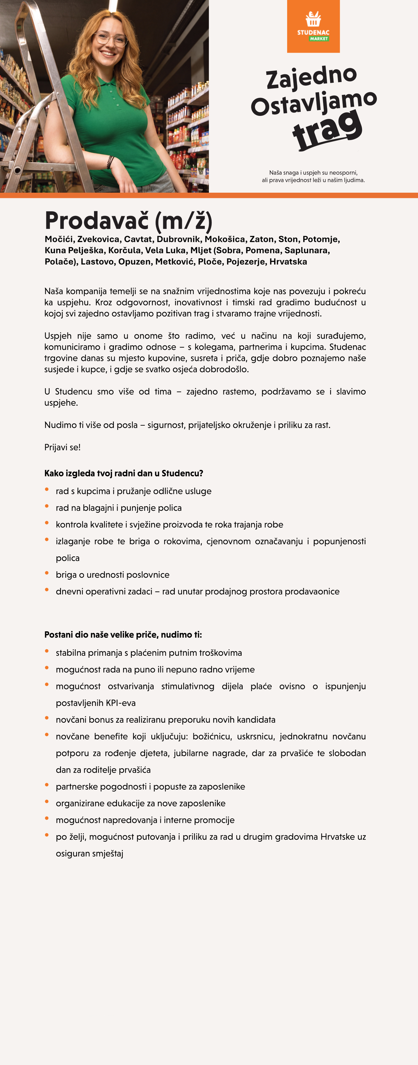 Prodavač (m/ž) - Dubrovačko-neretvanska županija