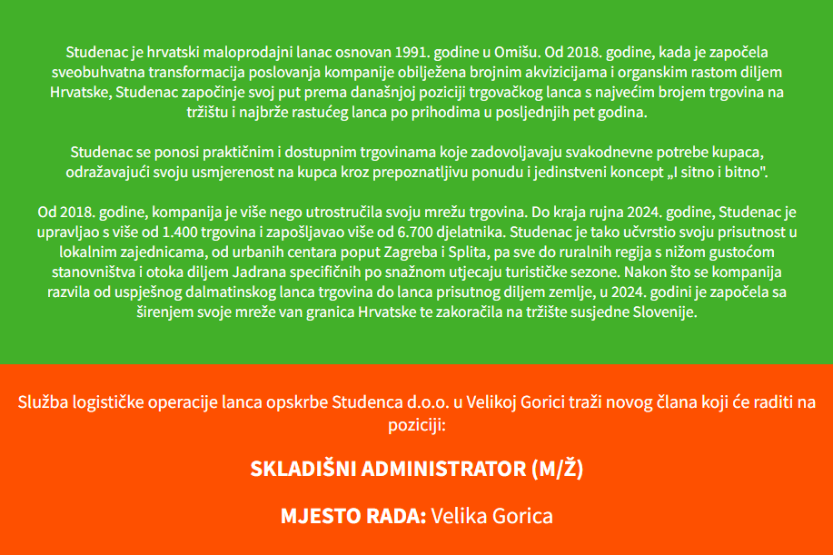 Skladišni administrator - Velika Gorica
