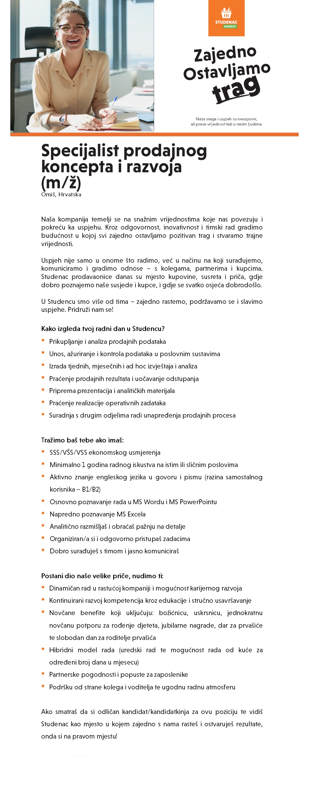 Specijalist prodajnog koncepta i razvoja (m/ž)