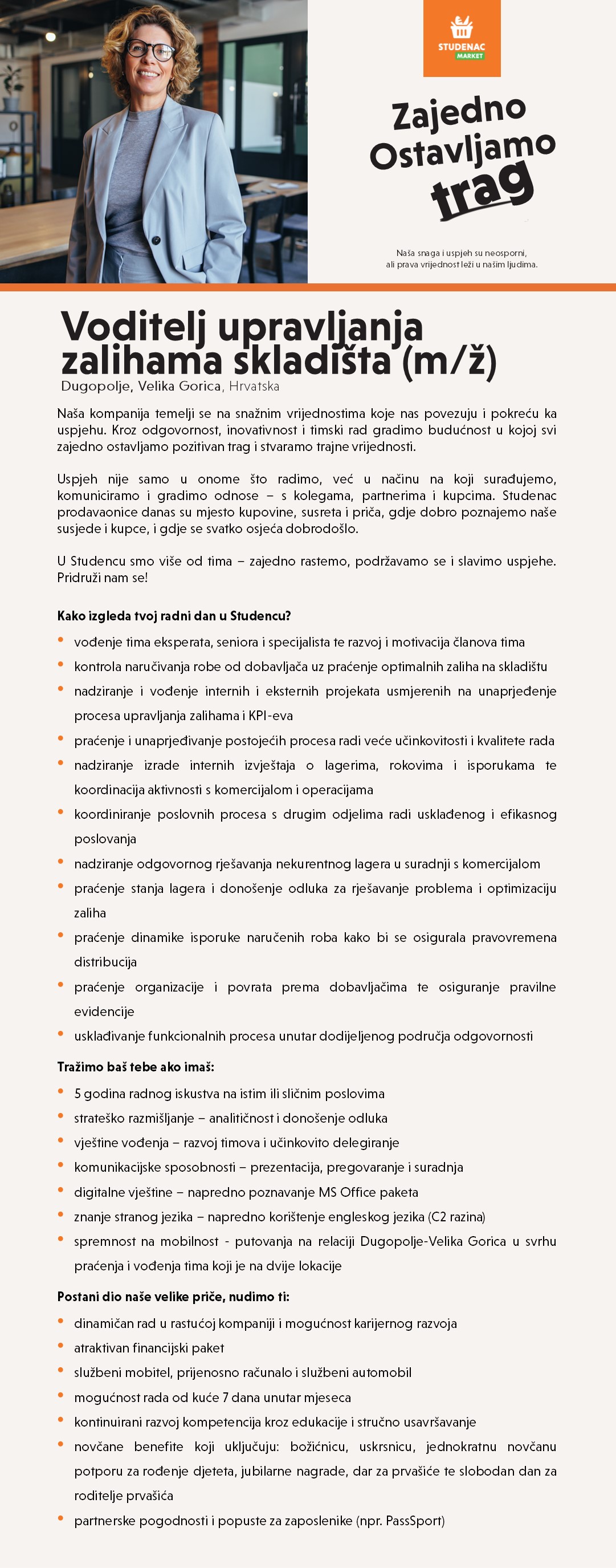 Voditelj upravljanja zalihama skladišta (m/ž)